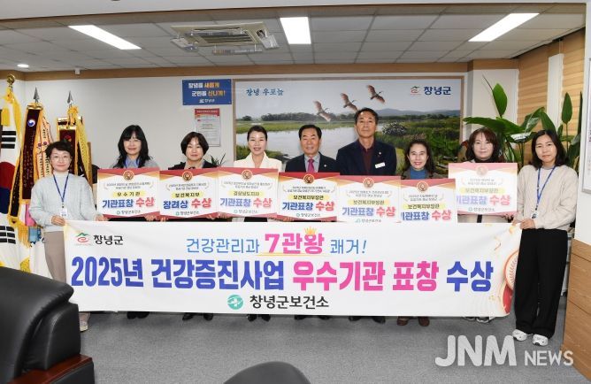 제이앤엠뉴스 | 창녕군은 보건소 건강관리과에서 2025년 한 해 동안 중앙부처 및 경상남도 등에서 주관한 각종 사업평가에서 전 팀이 총 7개 분야의 상을 휩쓸며 ‘7관왕’의 영예를 안았다고 24일 밝혔다.