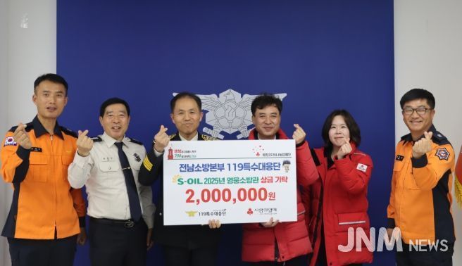 제이앤엠뉴스 | 전남119특수대응단(단장 정삼태)은 12월24일 수요일 ‘2025 올해의 영웅소방관’으로 선정된 천영민 소방관의 기부금(2백만원)을 전남사회복지 공동모금회에 전달식을 개최했다고 밝혔다.
