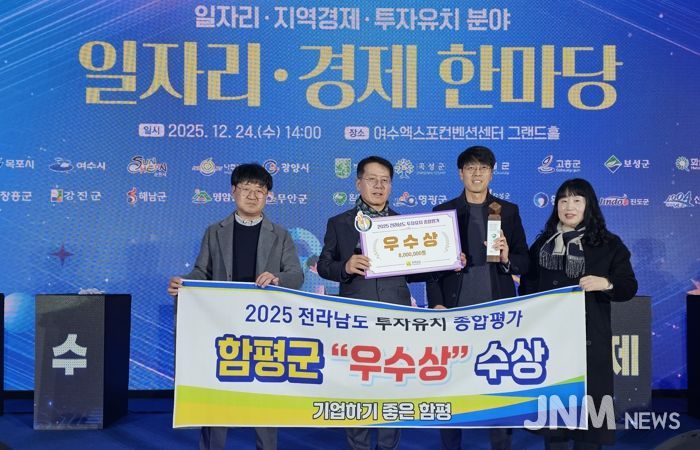 함평군은 지난 24일 전남도 주관 ‘2025년 전라남도 투자 유치 종합평가’에서 우수상을 수상했다고 25일 밝혔다.