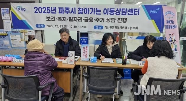 제이앤엠뉴스 | 파주시는 지난 23일 적성면 행정복지센터에서 정보 취약계층을 대상으로 보건, 복지, 일자리, 금융, 주거 등 5개 분야를 한자리에서 상담하는 ‘찾아가는 이동상담센터’를 운영했다고 밝혔다.