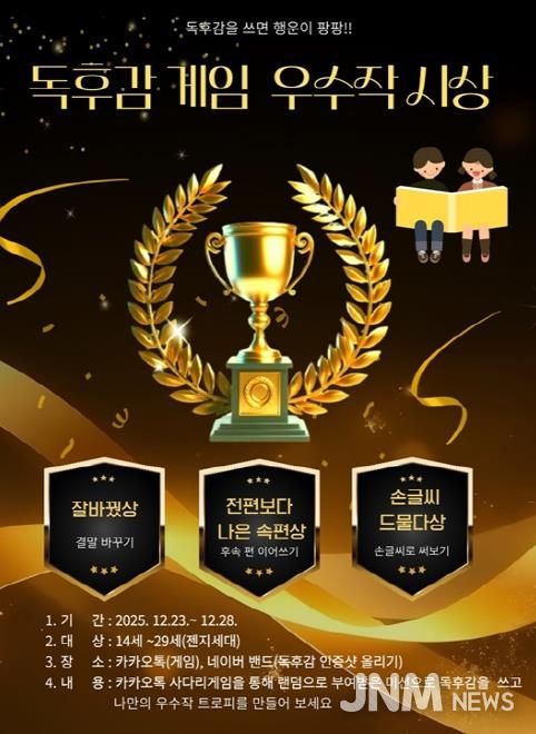 제이앤엠뉴스 | 교하도서관은 연말을 맞아 ‘젠지 세대’를 대상으로 한 참여형 독서 프로그램 ‘독후감 게임 우수작 시상’을 지난 12월 23일부터 28일까지 운영하고 있다.