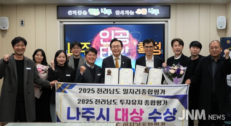 나주시는 지난 24일 여수엑스포컨벤션센터에서 열린 ‘2025년 전라남도 일자리·경제 한마당’ 행사에서 일자리 창출과 투자유치 2개 부문에서 각각 최고상인 ‘대상’을 수상했다고 26일 밝혔다.