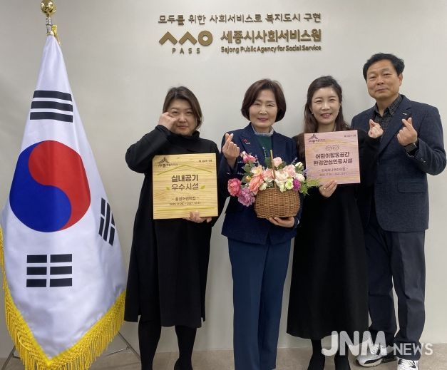 제이앤엠뉴스 | 세종시사회서비스원(원장 김명희)이 운영하는 충녕어린이집과 반곡하나어린이집이 세종특별자치시로부터 지난 19일 ‘2025년 실내 공기질·어린이활동공간 우수시설’로 지정됐다.