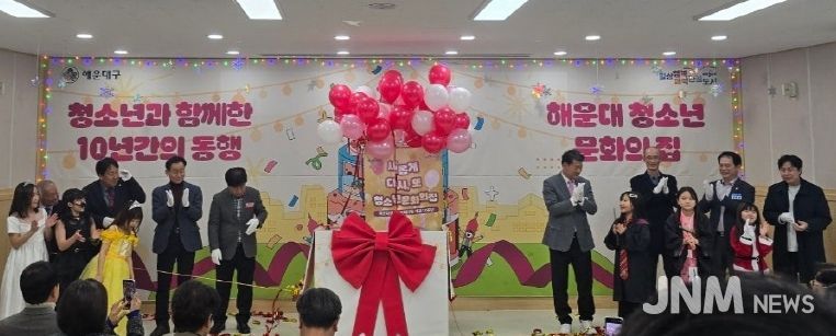 제이앤엠뉴스 | 해운대구는 지난 20일 ‘청소년과 함께한 10년의 성장’이라는 주제로 해운대청소년문화의집 개관 10주년 기념행사를 성황리에 개최했다. 행사에는 청소년과 지역주민 300여 명이 참여해 다양한 프로그램을 즐기며 청소년과 지역사회가 함께하는 축제의 장을 만들었다.