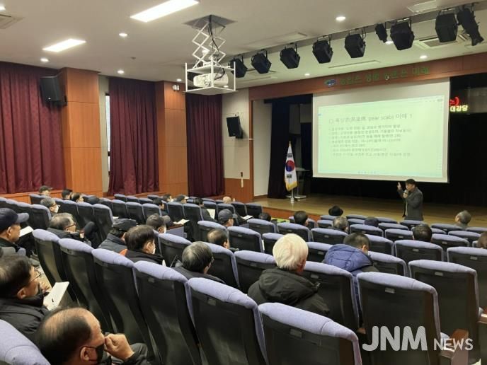 이어 김병준 팀장은 ‘배나무 살균제 활용기술(검은별무늬병)’을 주제로 △예방·치료 살균제의 적기 처리 방법 △검은별무늬병 군별 약제 정리 △2026년 배 과원 실천 기술 △전정·시비의 균형 관리 등 현장 적용 중심의 내용을 상세히 설명했다.