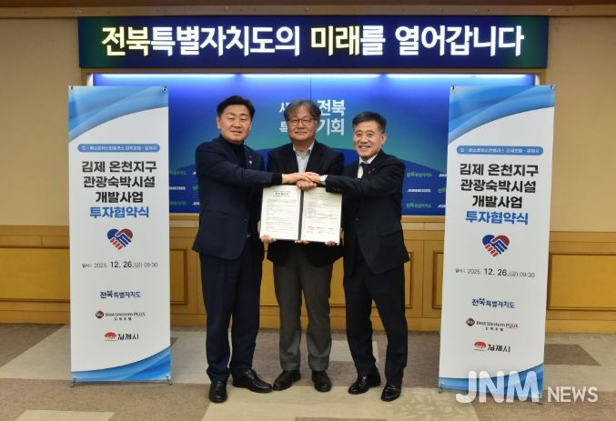 시는 26일 전북특별자치도청 도지사 회의실에서 전북특별자치도, ㈜베스트웨스턴플러스 김제호텔(대표 김해영)과 함께 김제 온천지구 관광숙박시설 개발사업을 위한 투자협약을 체결했다고 밝혔다.