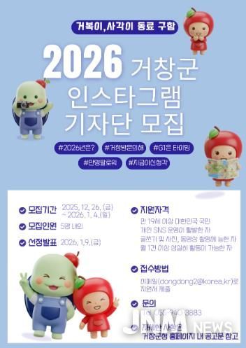 제이앤엠뉴스 | 거창군은 지역 관광자원의 매력을 생생하게 전달하고 온라인 홍보를 강화하기 위해 ‘2026년 거창군 인스타그램 기자단’을 모집한다고 26일 밝혔다.