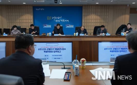 제이앤엠뉴스 | 전라남도의회 순천 신대ㆍ선월지구 개발이익 환수 특별위원회는 지난 24일 전라남도 동부지역본부에서 제2차 회의를 열고, 광양만권경제자유구역청의 업무보고 청취 후 현안에 대한 질의를 진행했다.