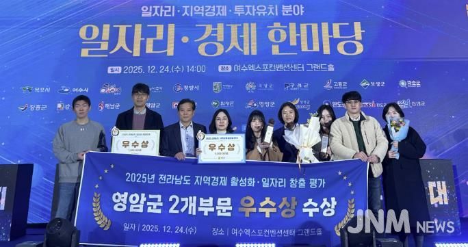 제이앤엠뉴스 | 영암군이 24일 여수엑스포컨벤션센터에서 열린 ‘2025년 전남 일자리·경제 한마당’에서 일자리 창출 우수상을 수상했다.