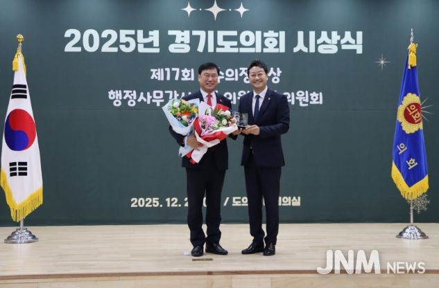 제이앤엠뉴스 | 경기도의회 교육기획위원회 이택수 의원(국민의힘, 고양8)과 성기황 의원(더불어민주당, 군포2)이 26일 열린 2025년 경기도의회 시상식에서 ‘2025년 행정사무감사 우수위원’으로 선정됐다.