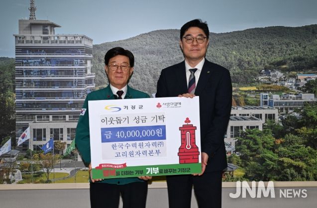 제이앤엠뉴스 | 부산 기장군은 지난 24일 한국수력원자력(주) 고리원자력본부(본부장 이상욱)가 관내 저소득 취약계층을 위해 이웃돕기 성금 4,000만원을 기탁했다고 26일 밝혔다.