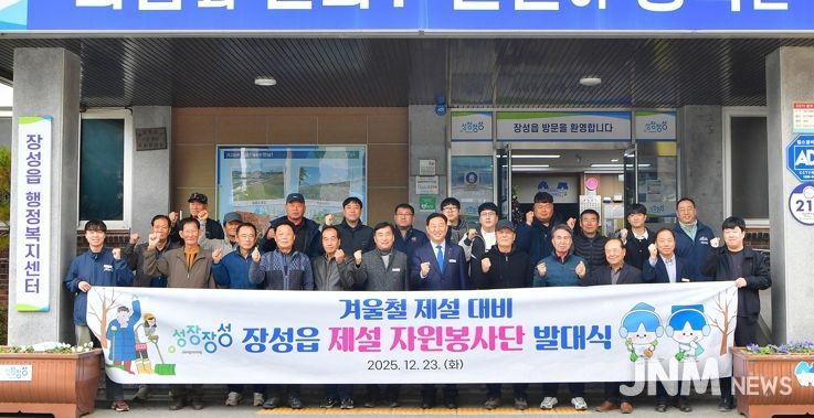 제이앤엠뉴스 | 장성군 장성읍 제설자원봉사단이 최근 행정복지센터 앞에서 발대식을 갖고, 본격적인 폭설 대비에 들어갔다.