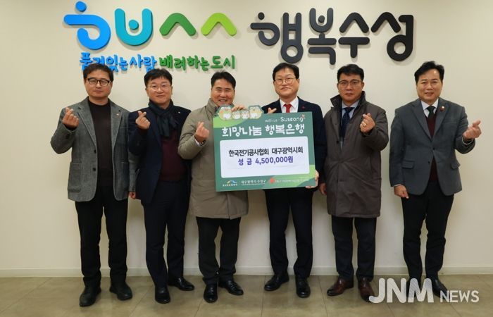 제이앤엠뉴스 | 한국전기공사협회 대구광역시회는 지난 26일 관내 어려운 이웃을 위해 성금 450만 원을 수성구청에 전달했다.
