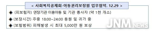 이번 야간 연장돌봄 사업에는 KB금융도 함께 참여한다. 복지부-KB금융 업무협약(’25.10.2.)을 통해 이번 사업 참여기관인 360개소를 포함한 전국 1천여 개 마을돌봄시설의 야간 시간대 이용아동과 종사자들의 안전을 함께 책임진다. 29일에는 사회복지공제회와 아동권리보장원이 업무협약을 맺어 연장기관 이용아동 및 기관 종사자를 대상으로 보험 가입 등을 지원할 예정이다.