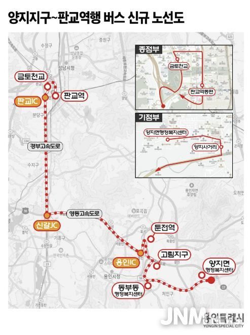 제이앤엠뉴스 | 용인 양지지구를 출발해 고림동과 둔전역을 거쳐 성남 판교역까지 운행하는 버스 노선이 확정됐다.