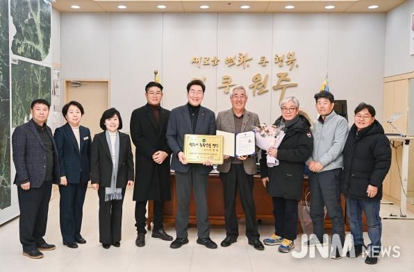 제이앤엠뉴스 | 원주시는 제1호 농특산물 명인으로 이병동 씨를 선정하고, 지난 26일 명인 인증서와 인증패를 전달했다.