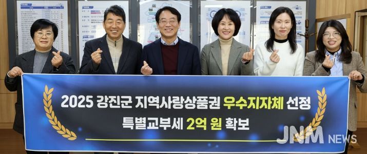 제이앤엠뉴스 | 강진군이 행정안전부 주관 ‘2025년 지역사랑상품권 발행 우수지자체’로 선정돼 특별교부세 2억 원을 확보했다.