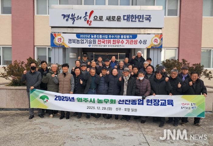 제이앤엠뉴스 | 영주시농우회(회장 서석현)는 지난 29일, 회원 38명이 참여한 가운데 성주, 포항 일원에서 열린 '2025년 영주시농우회 선진농업 연찬교육'을 성공적으로 마무리했다.