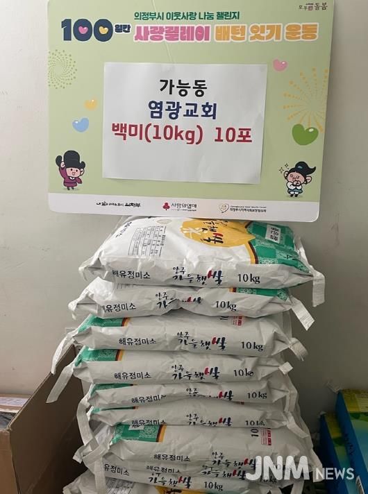 제이앤엠뉴스 | 의정부시 가능동주민센터는 12월 26일 의정부 염광교회가 연말을 맞아 백미 10포(10kg 단위)를 기탁하며 ‘100일간 사랑릴레이 배턴 잇기’에 동참했다고 밝혔다.
