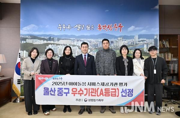 제이앤엠뉴스 | 울산 중구가 성평등가족부 주관 ‘2025년 아이돌봄 서비스 제공기관 평가’에서 A등급을 받아 우수기관으로 선정됐다.
