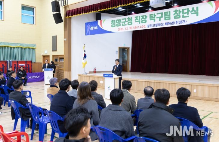 제이앤엠뉴스 | 청양군이 군청 직장운동경기부 탁구팀을 창단하고, 정산초·정산중·정산고 탁구부와 연계한 ‘지역 연계형 선순환 육성체계’ 구축에 본격 나섰다.