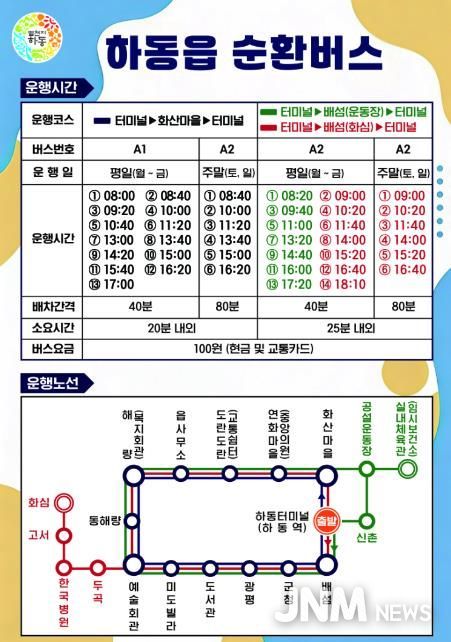 제이앤엠뉴스 | 하동군은 군민의 이동 편의성을 높이고, 대중교통 접근성을 강화하기 위해 오는 2026년 1월 1일부터 하동읍 순환버스를 대폭 확대 운행한다고 밝혔다.