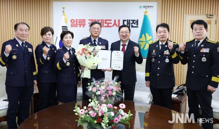 제이앤엠뉴스 | 대전시는 31일 시청 응접실에서 이대식 대덕소방서 남성의용소방대장을 신임 대전의용소방대연합회 남성회장으로 임명했다.