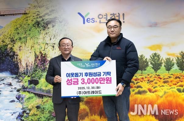 이에 연천군 관계자는 “한 해를 마무리하는 시점에 연천군을 위해 큰 기부를 해주셔서 진심으로 감사드린다”며 “기탁해주신 성금은 관내 소외계층을 위해 소중하게 쓰겠다”고 ㈜아트레이드의 따뜻한 마음에 고마움을 전했다.