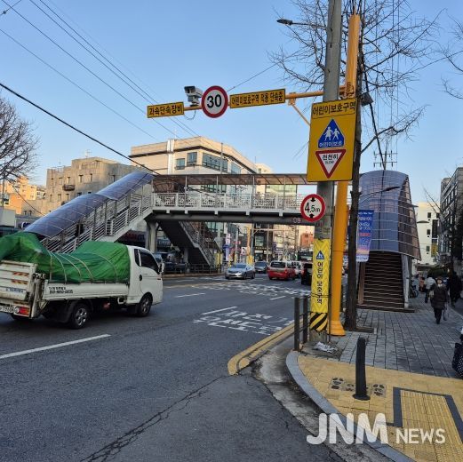 제이앤엠뉴스 | 비가 오면 계단이 미끄럽고, 한여름엔 햇볕이 그대로 내리쬐던 배봉초 앞 보도육교가 ‘지붕 있는 통학로’로 바뀌었다. 동대문구가 학생들의 등하굣길 불편을 줄이기 위해 보도육교에 캐노피 설치를 마무리하면서다.