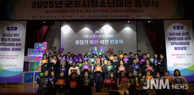 제이앤엠뉴스 | 군포시청소년재단은 2025년 한 해를 마무리하고 새로운 도약을 다짐하기 위해 '2025년 미션·비전 선포식'을 개최했다.