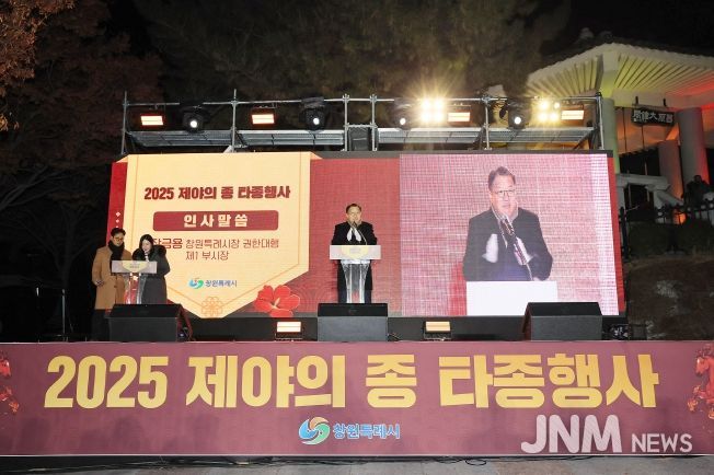제이앤엠뉴스 | 창원특례시는 2025년 12월 31일 밤, 창원대종각에서 개최한 ‘제야의 종 타종행사’를 시민들의 뜨거운 호응 속에 성황리에 마무리했다고 밝혔다.