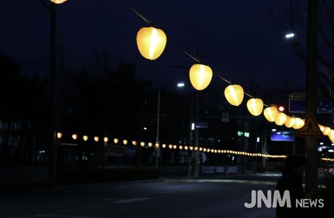 특히, 이번 곶감조명등은 곶감모형 설치와 더불어 겨울감성을 느낄 수 있는 눈꽃·트리·별·달 모양의 LED조명을 함께 설치하여 특색있는 도심 밤거리를 느낄 수 있게 했다.