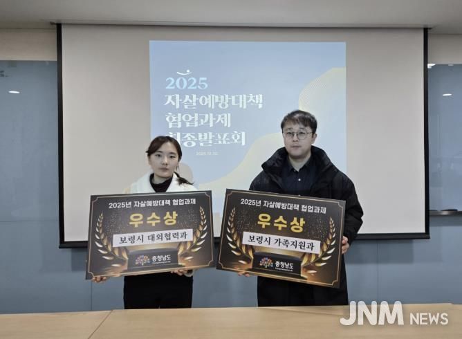 제이앤엠뉴스 | 보령시가 충청남도가 주관한 ‘2025년 자살예방대책 협업과제’ 평가에서 우수한 성과를 거뒀다. 대외협력과와 가족지원과가 각각 제출한 두 개 과제가 최종 발표 심사에서 우수상을 받았다.