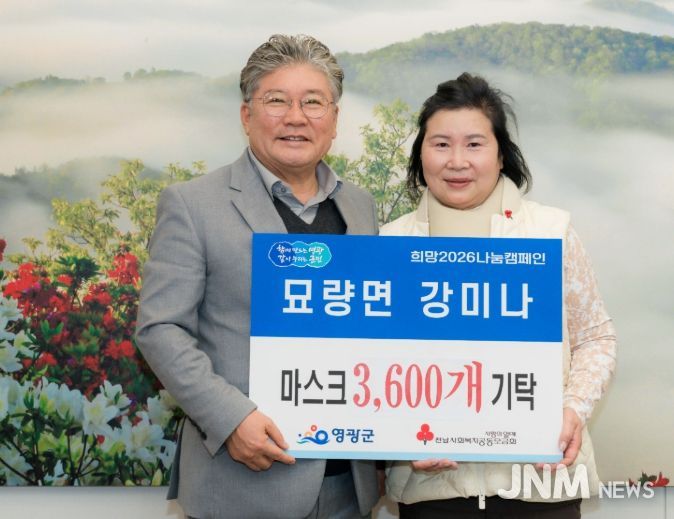 제이앤엠뉴스 | 영광군은 2025년 12월 30일 묘량면에 거주하는 강미나 씨가 어려운 이웃들에게 전달해달라며 마스크 3,600개를 기탁해 희망2026나눔캠페인에 동참했다고 밝혔다.