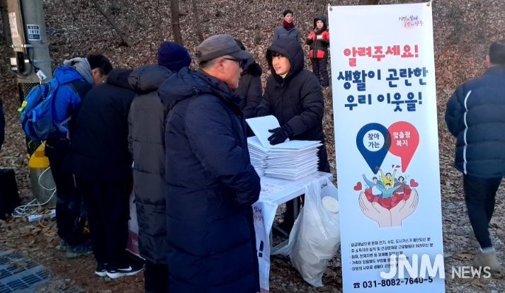 제이앤엠뉴스 | 양주시 장흥면 맞춤형복지팀이 지난 1일 양주항공관측소 정상에서열린 ‘2026년 장흥면 해맞이 행사’현장에서 ‘겨울철 복지사각지대 발굴 캠페인’을 전개했다.