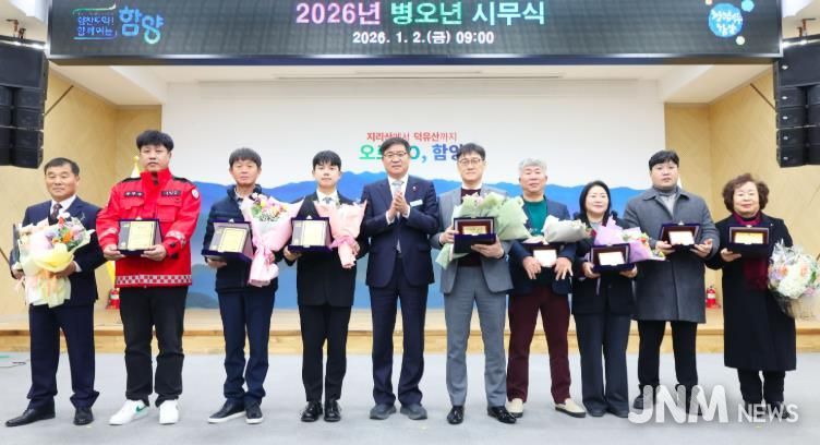 제이앤엠뉴스 | 함양군은 2일 오전 9시 군청 대회의실에서 공무원, 유관기관, 민간인 등 150여 명이 참석한 가운데 ‘2026년 병오년 시무식’을 개최했다.