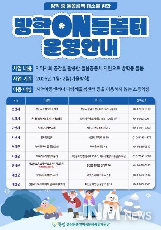 제이앤엠뉴스 | 충남사회서비스원은 1월 2일부터 겨울방학 기간 동안 돌봄이 필요한 아동을 위해 방학ON돌봄터를 발굴하여 운영을 지원한다.
