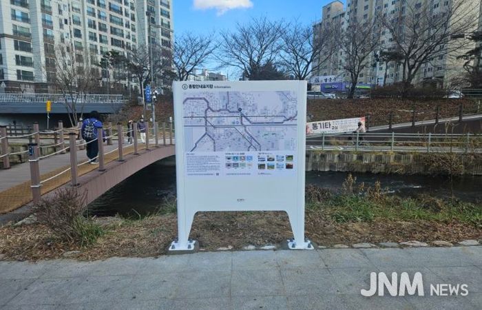 제이앤엠뉴스 | 용인특례시 수지구는 시민들이 하천 산책로와 자전거 도로를 편리하게 이용할 수 있도록 탄천·성복천·정평천 일원에 하천 안내판 설치를 완료했다고 4일 밝혔다.