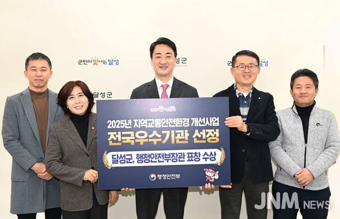 제이앤엠뉴스 | 대구 달성군이 행정안전부 주관 ‘2025년 지역교통안전환경개선사업’ 평가에서 전국 우수기관으로 선정되며, 행정안전부 장관상을 수상했다고 4일 밝혔다.