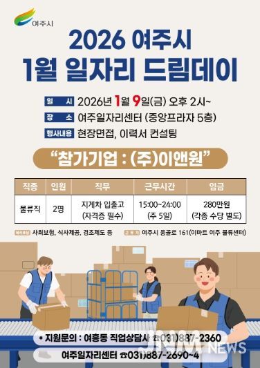 제이앤엠뉴스 | 여주시는 오는 1월 9일 오후 2시 여주일자리센터(세종로 14번길 18, 중앙프라자 5층)에서 ‘2025년 첫 여주시 일자리드림데이’를 연다.