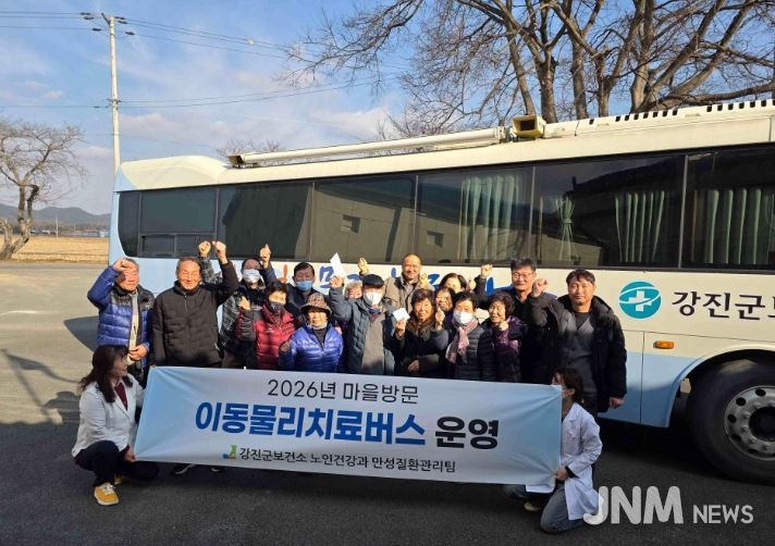제이앤엠뉴스 | 강진군보건소가 의료기관 접근이 어려운 어르신들의 건강증진을 위해 지난 5일 작천면 하평마을과 상평마을을 시작으로 2026년도 ‘이동물리치료버스’ 사업을 시작했다.