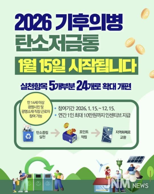 제이앤엠뉴스 | 광명시가 오는 15일부터 2026년 기후의병 탄소저금통 사업을 확대 개편해 운영한다고 8일 밝혔다.