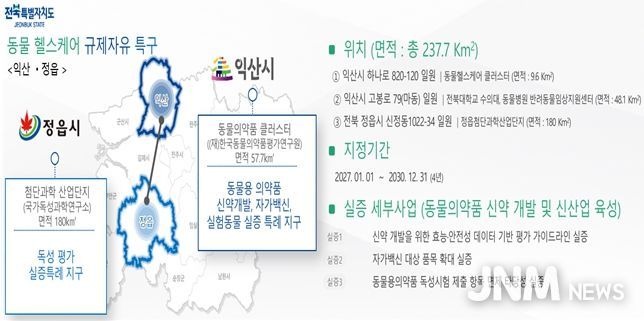제이앤엠뉴스 | 전북특별자치도가 차세대 동물의약품 산업 육성을 위한 규제자유특구 실증사업 구체화에 나섰다고 8일 밝혔다.