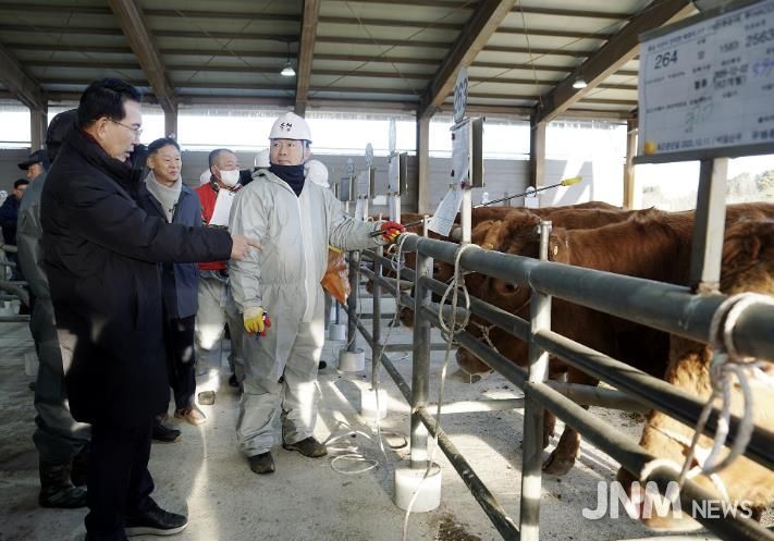 제이앤엠뉴스 | 이완섭 서산시장이 8일 음암면 상홍리에 있는 서산태안축협 가축경매시장을 방문했다.
