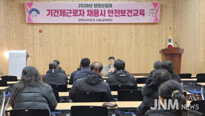 제이앤엠뉴스 | 양평군은 지난 7일 양평 쉬자파크 산림교육센터에서 산림 현장에서 근무하는 기간제근로자 12명을 대상으로 안전보건교육을 실시했다.
