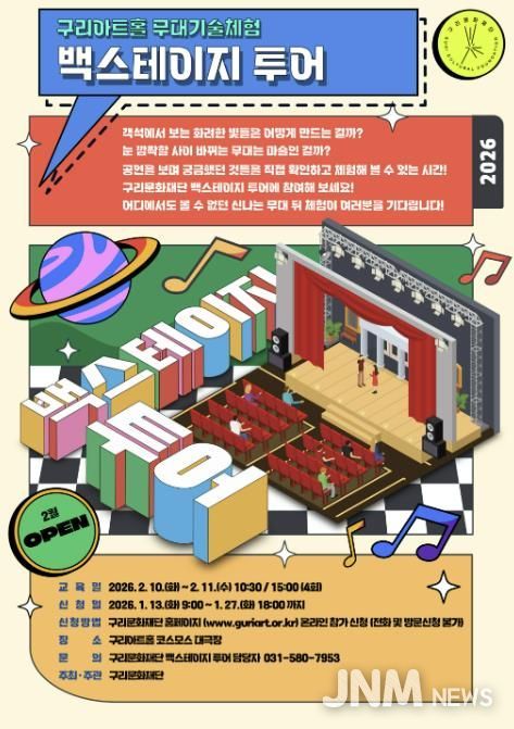 제이앤엠뉴스 | 구리문화재단은 〈무대 기술 체험 백스테이지 투어 프로그램〉 참가자를 오는 1월 13일 오전 9시부터 1월 27일 오후 6시까지 재단 홈페이지를 통해 선착순 모집한다고 밝혔다.