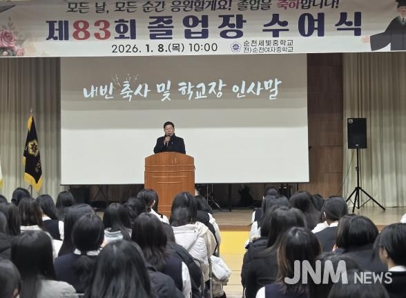 제이앤엠뉴스 | 김정희 전남도의회 교육위원장은 1월 8일, 순천세빛중학교에서 열린 제83회 졸업식에 참석해 졸업생들의 새로운 출발을 축하하고, 전남교육의 미래를 향한 따뜻한 격려의 메시지를 전했다.