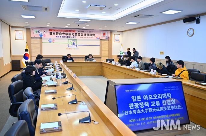 제이앤엠뉴스 | 속초시가 2026년 1월 8일 일본 아오모리대학 관계자들과 관광정책 간담회를 열고, 속초시와 일본 아오모리시 간 관광 교류 협력방안을 논의했다. 이날 아오모리대학 교수와 학생 등 8명이 속초시를 방문했다.