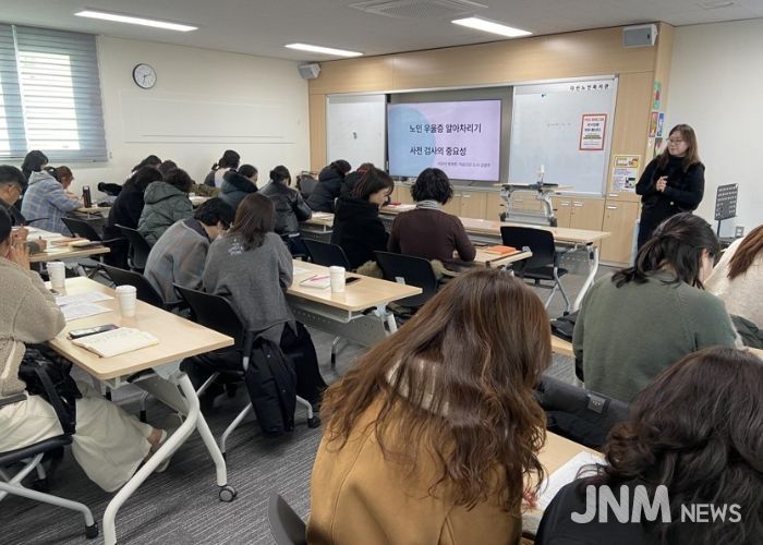교육 내용은 △ 노년기 우울의 주요 증상과 특성 △우울 고위험군 조기 발견 방법 △위기상황 대응 요령 및 정신건강복지센터 연계 절차 등 현장 중심의 실무 내용으로 구성됐다.