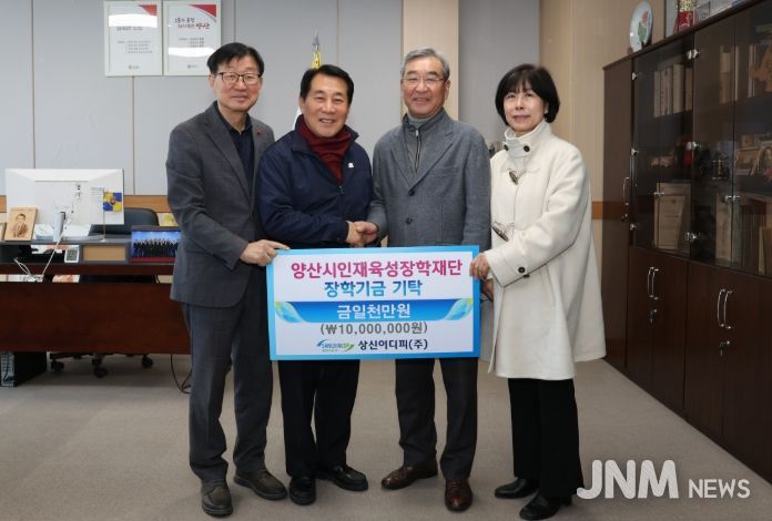 제이앤엠뉴스 | 양산시인재육성장학재단(이사장 이희종)은 지난 9일 상신이디피(주)(대표 김일부)가 장학재단(이사장 이희종)에 장학금 1,000만원을 기탁했다고 밝혔다.